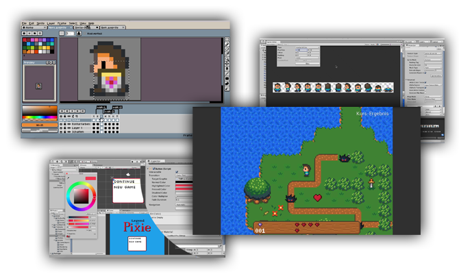Im Rahmen einer kleinen Projektarbeit entstehen experimentelle Spieldemos, die die Studierenden eigenständig planen, organisieren und umsetzen.